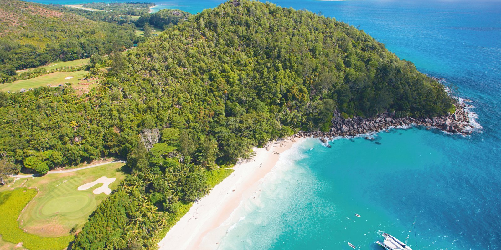 This tour includes a bus tour on Praslin with stops at Vallée de Mai (photo stop only) and Anse Lazio Beach, followed by lunch and bicycle rental on La Digue for exploration.